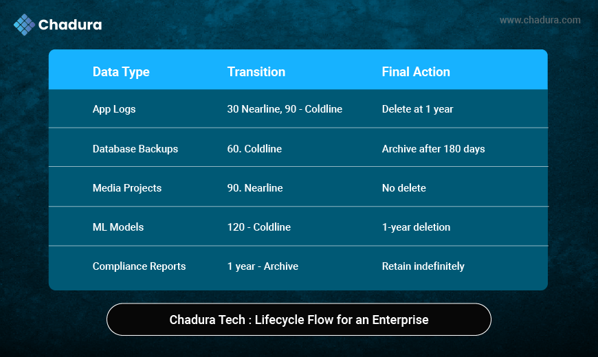 This comprehensive guide by Chadura Tech breaks down everything you need to know about GCS life cycle management—from storage class fundamentals to real-world examples, implementation steps, YAML policies, automation strategies, and enterprise best practices.